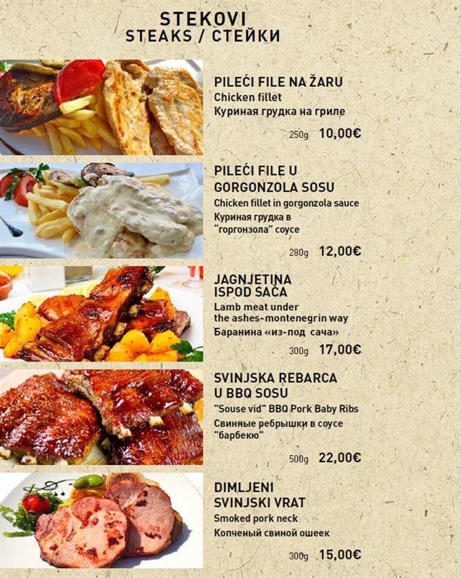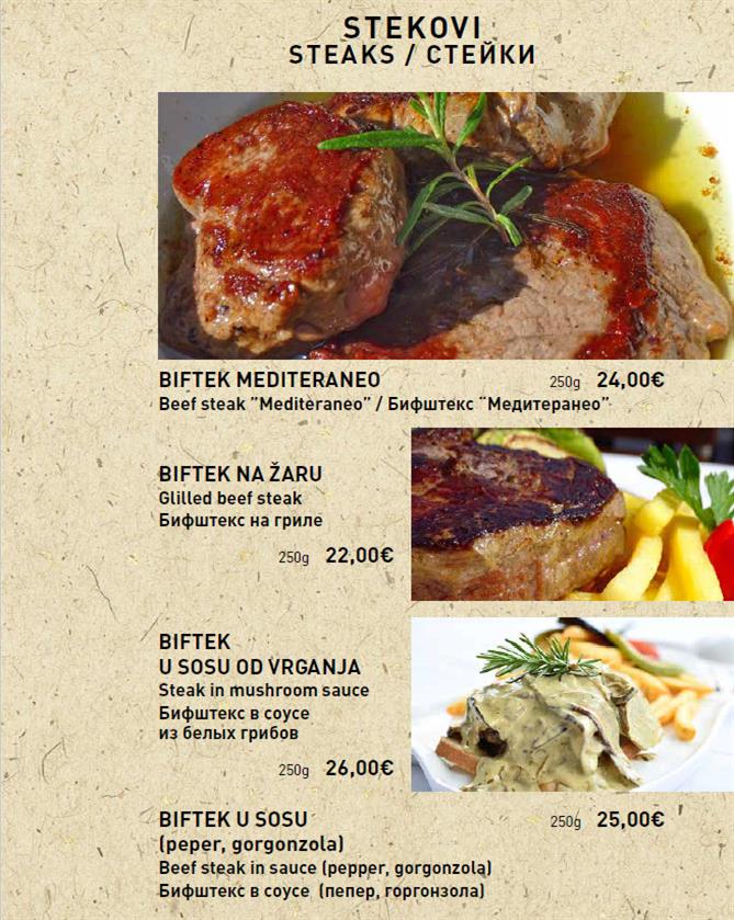 Svako jelo pripremamo s ljubavlju, koristeći samo najkvalitetnije, svježe i lokalne sastojke. U našoj ponudi pronaći ćete raznovrsne opcije, od ukusnih tradicionalnih čorbi, savršeno pripremljenog mesa, do neodoljivih domaćih deserata, koji su prava poslastica za sva čula.